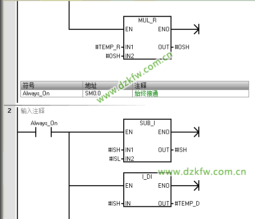 此子例程首先會讀取由調用POU傳遞的值:要縮放的輸入、輸入范圍上限 (ISH)、輸入范圍下限 (ISL)、輸出范圍上限 (OSH) 和輸入范圍下限 (OSL)。