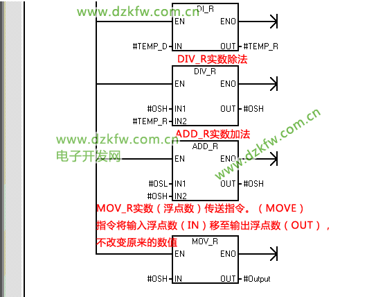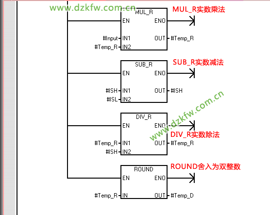 下一步是用 OSH 中減去 OSL,以確定存回 OSH 中的輸出縮放范圍。 接下來,該子例程會從輸入中減去 ISL,并將所得的差先轉換為雙字,然后再轉換為實數。 之后,下一條指令將該實數乘以輸出范圍。