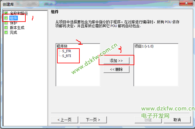 對話框---組件---程序塊,選擇剛剛保存的程序名稱,依次添加。