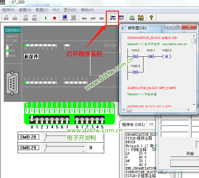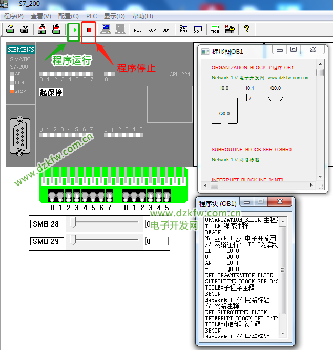 步驟1.打開S7-200系列PLC的STEP7編程軟件,將PLC的CPU型號(hào)設(shè)置為自己需要的型號(hào)(如CPU 224 CN),并編輯好程序,如圖1所示。