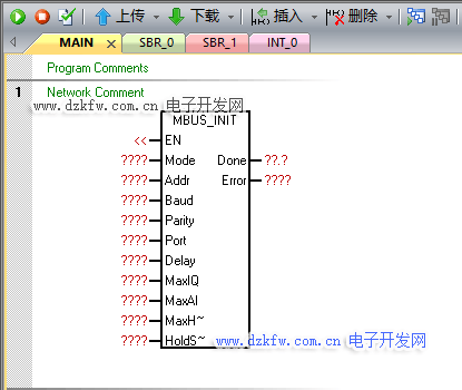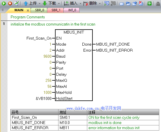4)MBUS_INIT僅在CPU啟動后的第一個掃描周期執行一次即可;如果更改通信參數,則重新再執行一次;