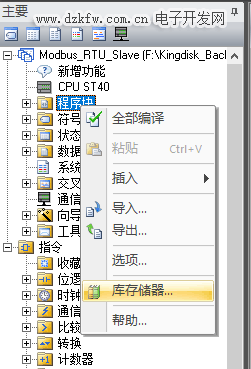 右鍵單擊“程序塊”,在彈出的菜單中單擊“庫存儲器”,如下圖: