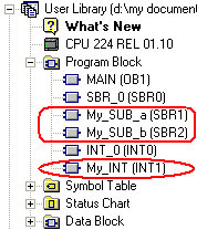 一個已存在的程序項目只有子程序、中斷程序可以被創建為指令庫。中斷程序只能隨定義它的主程序、子程序集成到庫中。