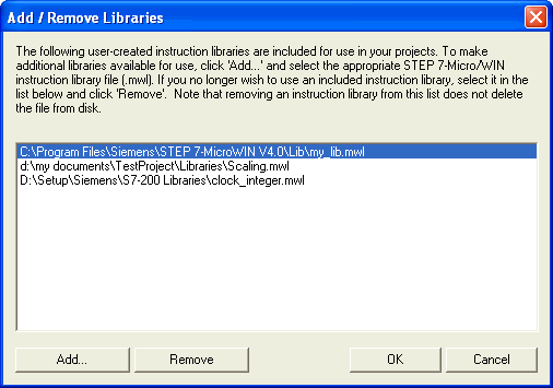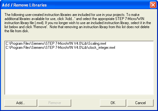 第二步:按Add(添加)按鈕,選擇新定義的庫文件路徑。用戶自定義庫將自動添加到Micro/WIN指令樹的Libraries分支下。