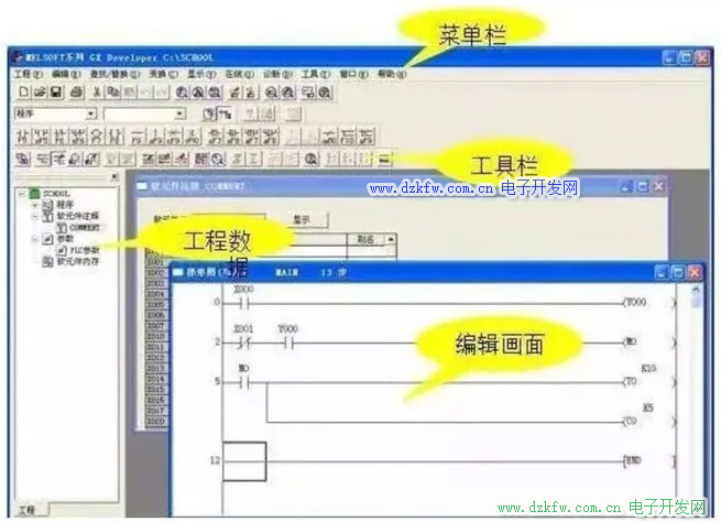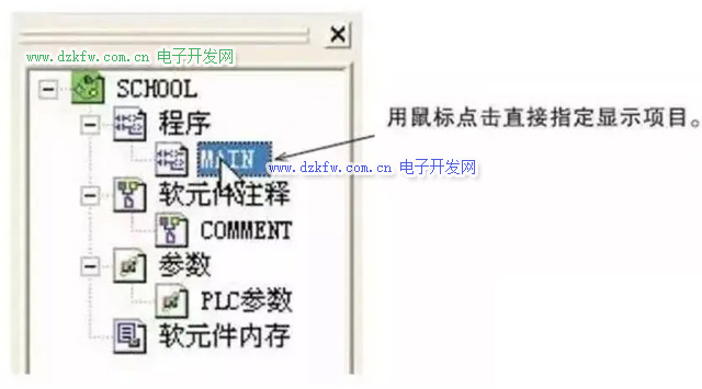 梯形圖編程窗口和參數設置畫面等的“樹形”顯示。