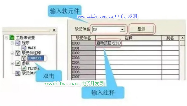 創建軟元件注釋:通過梯形圖進行輸入操作