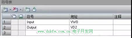 5.在符號表中給VW0和VD100設(shè)置符號名。