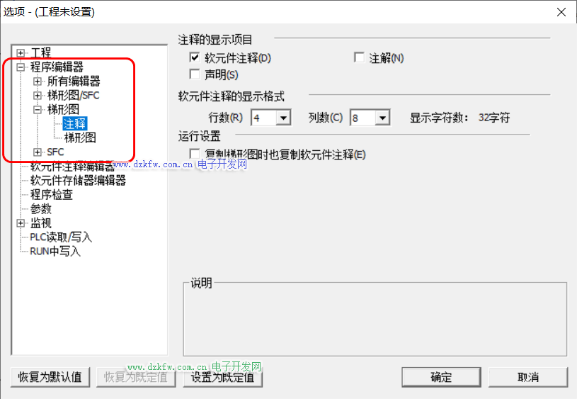 程序語言:在簡單工程類型下只能選擇梯形圖或SFC(順序功能圖)兩種語言。