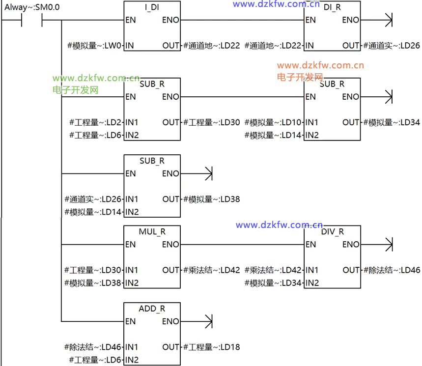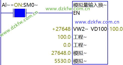 首先要把模擬量通道轉(zhuǎn)換成浮點數(shù)數(shù)據(jù)類型參與計算