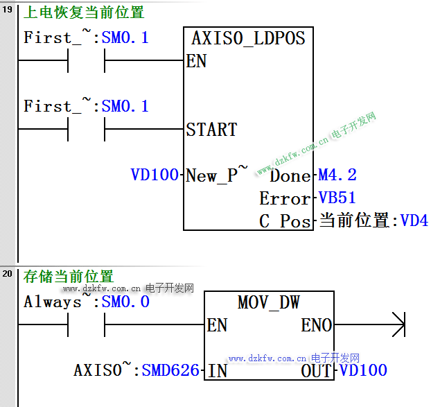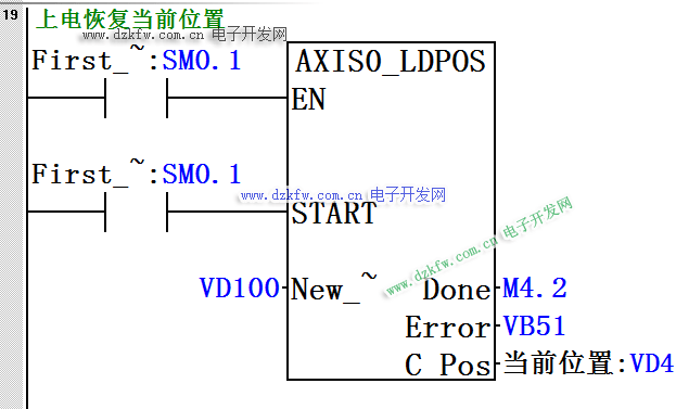 3)上電后將VD100中存儲(chǔ)的數(shù)值恢復(fù)成當(dāng)前位置。