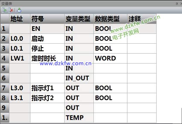 創(chuàng)建方法為:打開每個子程序都會彈出對應的變量表,如下圖: