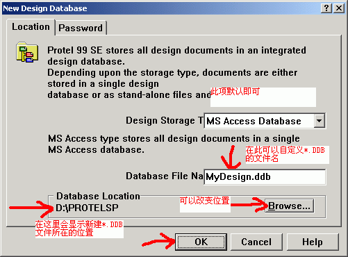 2.定義新建*.DDB的選項.