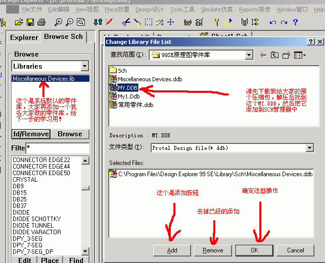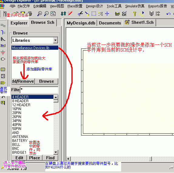 第1課:新建一個*.DDB,新建一個SCH文件,并且添加畫SCH要用到的零件庫