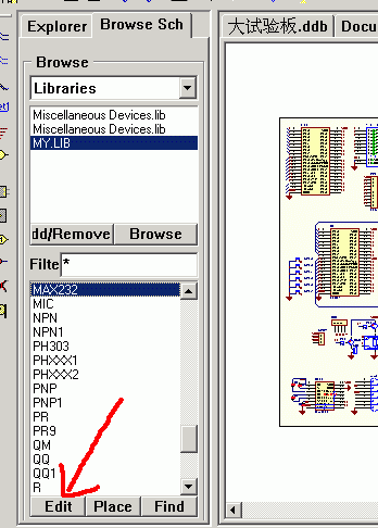 1.先來打開SCH文件,選中教學(xué)提供的那個(gè)SCH零件庫,然后選編輯,進(jìn)入SCH零件編輯器