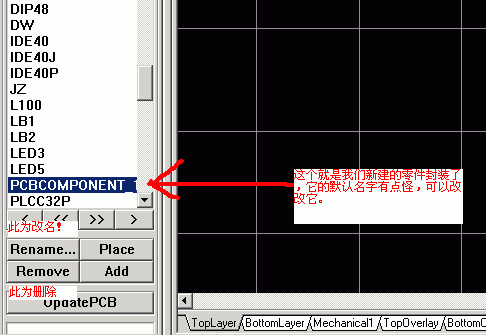 9.可以開始做封裝了,注意哪些中文注釋,核心問題就是焊盤的名稱,但愿你還記得做SCH零件的重點>>