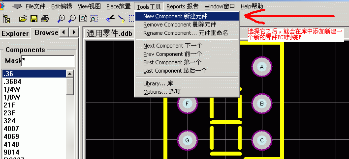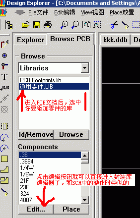 然后按著圖選擇編輯按紐就進入了PCB封裝編輯器