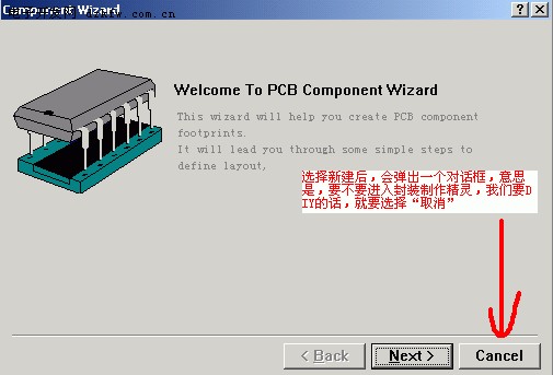 4.之后會(huì)出現(xiàn)這個(gè)對(duì)話框,是一個(gè)傻瓜精靈,選擇取消,因?yàn)槲覀円鲆粋(gè)完全屬于自己的封裝