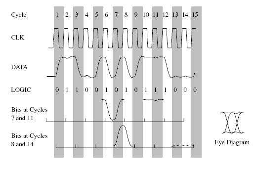 在每一個時鐘周期內都會有信號在傳輸。但是如果是一個很長的位流(bits),那么很難確定這個信號是否符合規(guī)范(specifications)。為了便于分析,那么所有的信號位都可以組成一個信號圖形的話,那么就可以看這個把這些圖形疊加起來看看是否符合規(guī)范。這就是眼圖。
