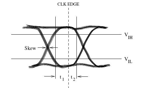 如下圖,假設所有的信號都是在時鐘的上升沿觸發(fā)。那么把所有數據信號的波形都按上升沿取出來并疊加在一起。每一個這樣的波形就叫一個SYMPLE。如圖所示的那樣(圖上只取出一個波形來,以便讀者能看清楚),這樣就形成了眼圖的前半截。接著按下降沿取出并疊加在一起,那么就可以形成眼圖的后半截。同時為高電平或低電平的信號波形組成眼圖的上面和下面。這樣就形成了一個標準的眼圖(如下圖)。然后所要做的是按信號規(guī)范在眼圖里定義進去就可以了。