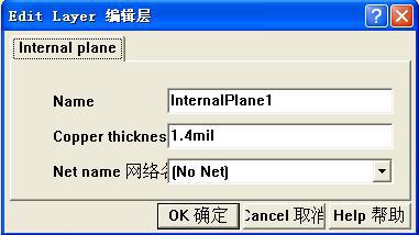 在Name對應的項中,填入VCC,點擊確定關閉對話框,也就是將該層改名為VCC,作為設計時的電源層。