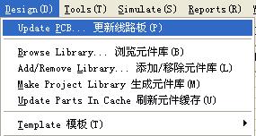 回到原理圖的界面,單擊主菜單Design ==> Update PCB如圖:
