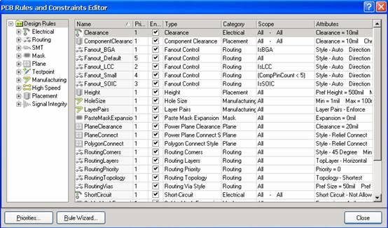 下面,將分別介紹各類設計規則的設置和使用方法。