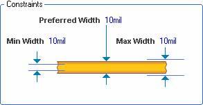 導線的寬度有三個值可以供設置,分別為 Max width (最大寬度)、 Preferred Width (最佳寬度)、 Min width (最小寬度)三個值,如圖 6-7 所示。系統對導線寬度的默認值為 10mil ,單擊每個項直接輸入數值進行更改。這里采用系統默認值 10mil 設置導線寬度。