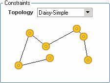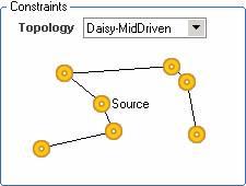 雛菊平衡規則設置如圖 6-13 所示,從 Tolpoogy 下拉菜單中選擇 Daisy Balanced 選項。它也選擇一個源點,將所有的中間節點數目平均分成組,所有的組都連接在源點上,并使連線最短。
