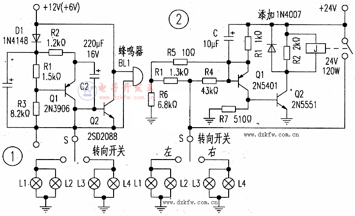 機(jī)動(dòng)車電子閃光器電路二例,Electronic flasher