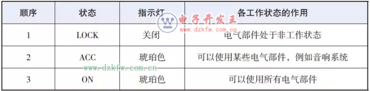 汽車點(diǎn)火開關(guān):一鍵啟動(dòng)按鈕的指示燈顏色對(duì)應(yīng)的狀態(tài)