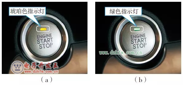 ② 如果一鍵啟動(dòng)開關(guān)上的琥珀色指示燈閃爍,這表明一鍵啟動(dòng)系統(tǒng)存在故障,應(yīng)立即關(guān)閉發(fā)動(dòng)機(jī)。