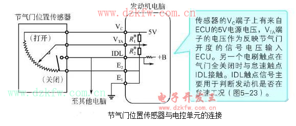 節氣門位置傳感器與電控單元的連接