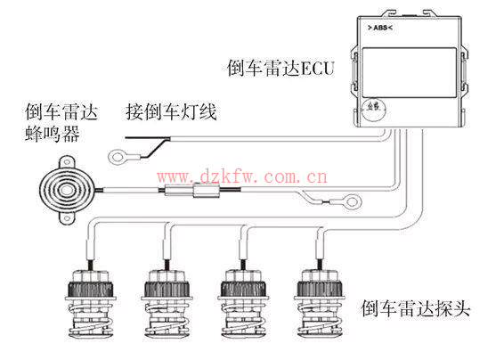 倒車?yán)走_(dá)系統(tǒng)由倒車?yán)走_(dá)ECU、倒車?yán)走_(dá)蜂鳴器及數(shù)個(通常為4個)安裝在(后)保險杠上的倒車?yán)走_(dá)傳感器等組成。如果安裝后攝像頭,則會在導(dǎo)航屏上提供車輛后部區(qū)域的圖像。