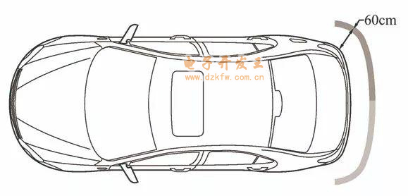 側(cè)面兩個傳感器的檢測范圍是距離保險杠拐角處60cm 的區(qū)域。