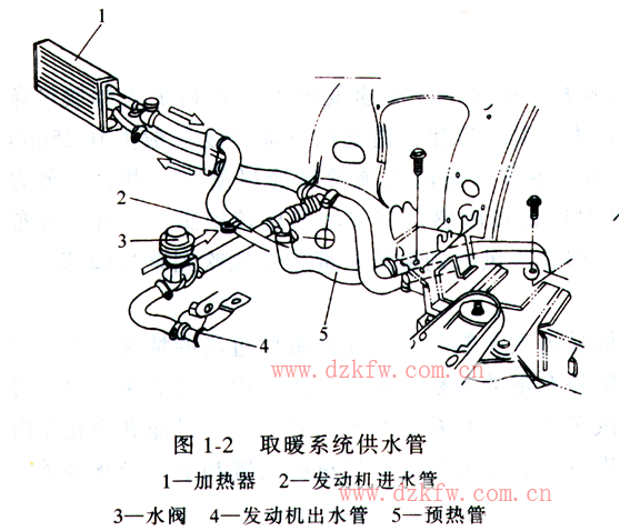 取暖系統是由加熱器、水閥、水管、發動機冷卻液組成。