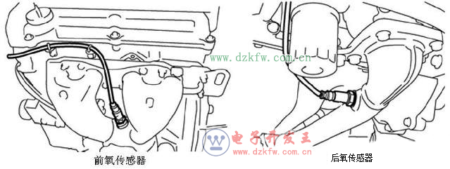 前氧傳感器安裝于三元催化器前部的排氣歧管上,后氧傳感器安裝于三元催化器后部的排氣管上。