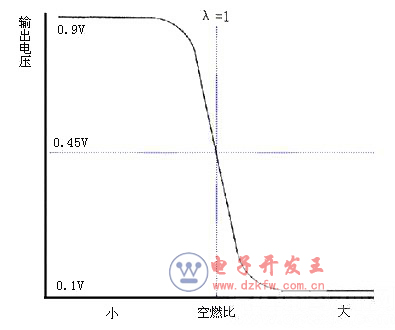 當混合氣處于理論空燃比14.7:1(λ=1)附近時,傳感器電壓變化率最高,瞬間出現0.45V的電壓。