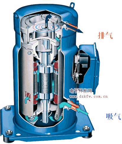 渦旋式壓縮機具有很多優點。例如 壓縮機體積小、重量輕,驅動動渦輪運動的偏心軸可以高速旋轉。因為沒有了吸氣閥和排氣閥,渦旋壓縮機運轉可靠,而且容易實現變轉速運動和變排量技術。多個 壓縮腔同時工作,相鄰壓縮腔之間的氣體壓差小,氣體泄漏量少,容積效率高。渦旋式壓縮機以其結構緊湊、高效節能、微振低噪以及工作可靠性等優點,在小型制 冷領域獲得越來越廣泛的應用,也因此成為壓縮機技術發展的主要方向之一。