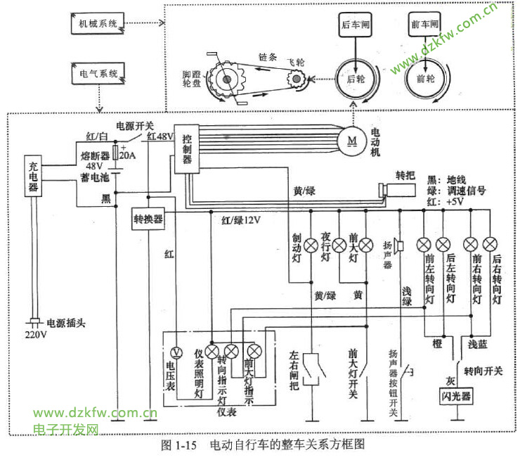 從方框圖中可以看出,電動自行車的整車工作過程即為電氣系統(tǒng)和機械系統(tǒng)相互協(xié)作的過程。