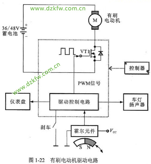 圖1-21所示為有刷電動機控制器的控制原理方框圖。