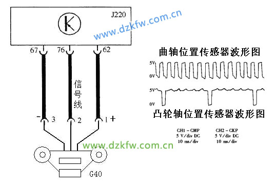 4、用汽車示波器檢測霍爾式凸輪軸位置傳感器的信號