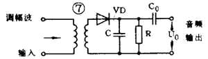 圖7是一個二極管檢波電路。VD是檢波元件,C和R是低通濾波器。當(dāng)輸入的已調(diào)波信號較大時,二極管VD是斷續(xù)工作的。正半周時,二極管導(dǎo)通,對C充電;負(fù)半周和輸入電壓較小時,二極管截止,C對R放電。在R兩端得到的電壓包含的頻率成分很多,經(jīng)過電容C濾除了高頻部分,再經(jīng)過隔直流電容C0的隔直流作用,在輸出端就可得到還原的低頻信號。