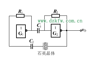 R2,電阻阻值恰好使“非門”內的晶體管工作在放大區,一般取800Ω~2kΩ。這樣,兩個“非”門通過電容