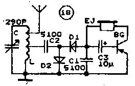 16、單管完成檢波、整流、放大的電路,左為共集電極,右為共基極,適合強(qiáng)臺(tái)旁使用。