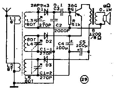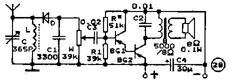 28、地電池中波收音機(jī),可用0.1W喇叭放音,輸出較大。
