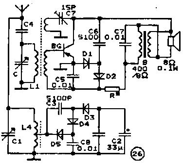 1、最簡(jiǎn)單的不調(diào)諧檢波式,形同礦石收音機(jī),只是用二極管代替了礦石。