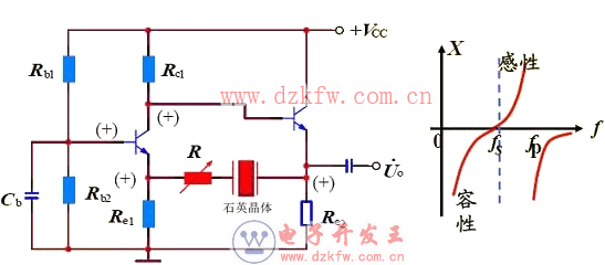 石英晶體工作在fs處,呈電阻性,而且阻抗最小,正反饋最強,相移為零,滿足振蕩的相位平衡條件。對于fs以外的頻率,石英晶體阻抗增大,且相移不為零,不滿足振蕩條件,電路不振蕩。