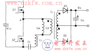 LLC振蕩電路由振蕩電容Cr、原邊Lp、漏磁電感Lr、激磁電感Lm和兩個MOSFET管和副邊兩只半橋整流二極管組成。其中,Cr、Lr和Lm這三個元件因負載變化組成的振蕩網(wǎng)絡(luò)有兩個:一個是由Cr與Lr組成的振蕩網(wǎng)絡(luò),此振蕩網(wǎng)絡(luò)的振蕩頻率與負載無關(guān);另一個是由Cr與Lm和Lr組成的振蕩網(wǎng)絡(luò),此網(wǎng)絡(luò)振蕩頻率與負載的輕重有關(guān),通常負載越重,電路的諧振頻率越高。