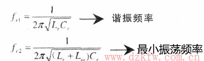 功率需求較高時,工作頻率高;反之,控制環(huán)路會降低開關(guān)頻率。若以fr表示LLC轉(zhuǎn)換器的振蕩頻率,則可通過參數(shù)選擇使其工作在五種振蕩狀態(tài):一是振蕩在frl以下;二是直接諧振在fr1;三是高于fr1;四是振蕩在fr2;五是在fr2之上振蕩。LLC諧振電路的振蕩頻率計算公式如下: