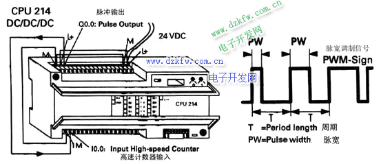 在西門子S7-200系列PLC中,CPU-214的輸出端Q0.0和Q0.1能夠輸出方波信號,而且方波信號的周期和脈寬均能獨立調節,其中脈寬指的是在一個周期內,輸出信號處于高電平的時間長度。